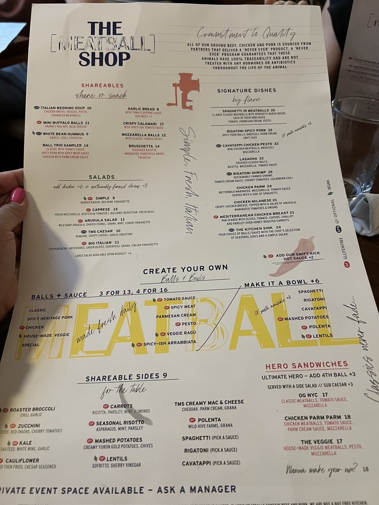 Introducing The Meatball Shop - Hell's Kitchen, a vibrant eatery in NYC offering a wide range of dishes, from classic Italian meatballs to innovative vegan options. The menu features signature dishes like the Gobble Gobble Plate and Baller Boxes for a fun dining experience. Customers appreciate the fast service, family-friendly atmosphere, and accommodating staff. The spicy pork rigatoni and bruschetta are highlights, offering flavorful twists on traditional favorites. Vegetarians will enjoy the diverse veggie side options, cocktails like the Mr. Tangerine Man, and extensive wine and beer selection. With gender-neutral restrooms, outdoor seating, and dog-friendly policy, The Meatball Shop caters to a diverse clientele. Whether you're grabbing a quick lunch or planning a group dinner, this casual yet trendy spot in Hell's Kitchen is sure to impress with its delicious food and welcoming ambiance.